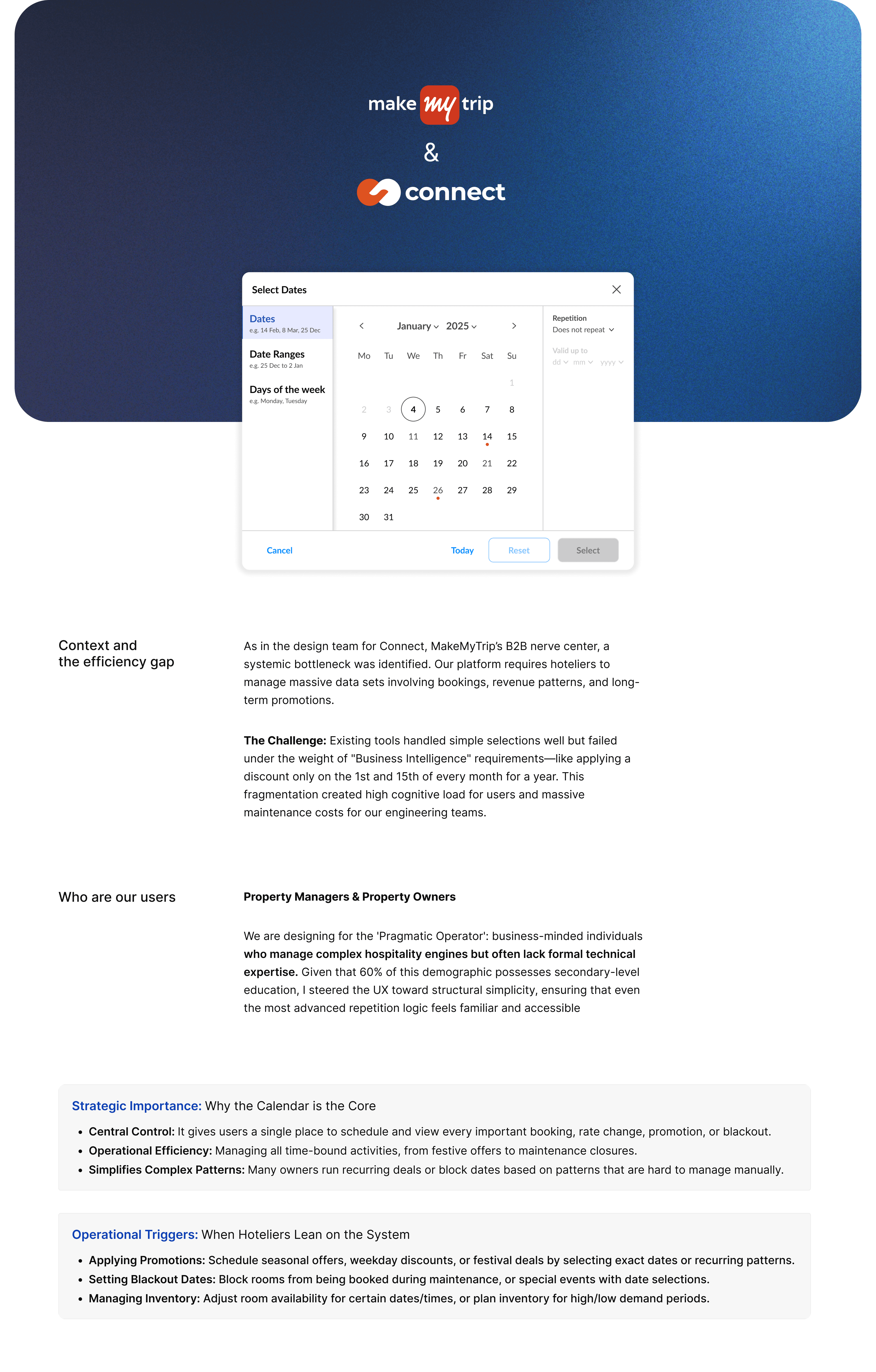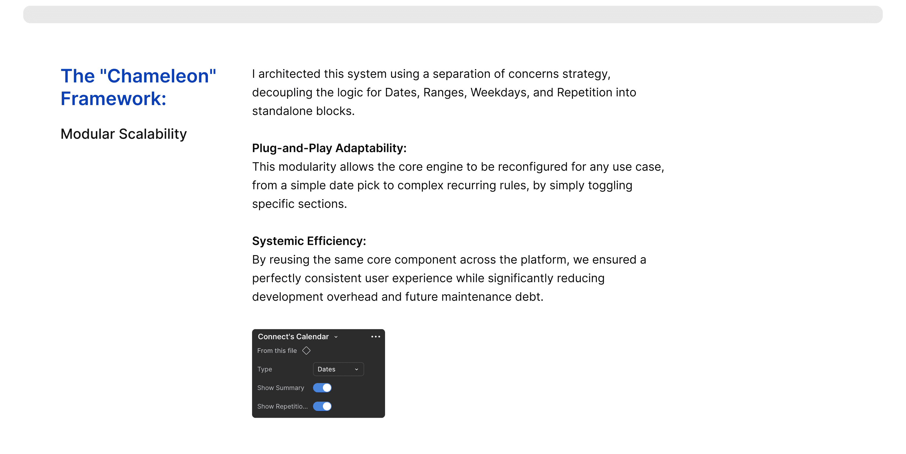 Standardized complex date-logic across 15+ business-critical modules, eliminating UI fragmentation and accelerating deployment velocity.